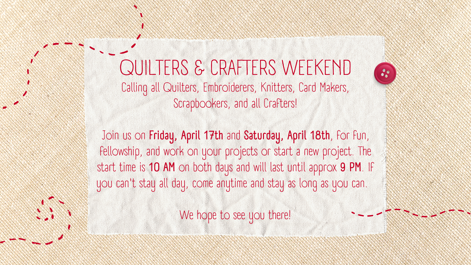 Quilters and Crafters Weekend - April 17-18